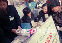 “入世”對中國保險業將帶來很大的沖擊,也將帶來很大的商機,北京保險業已經開始加強優質服務,以便在即將來臨的國際性商業競爭中取得足夠的份額。圖為中國人壽保險公司的工作人員十日熱情為客戶講解有關保險知識。中新社圖 張勤 攝