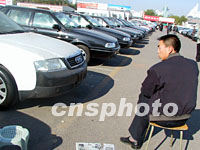11日中國正式加入世界貿易組織,北京最大汽車銷售點之一的亞運村汽車交易市場顧客寥寥,銷售代表面容沉郁地曬著太陽等待下班。據悉這里最旺時曾一星期銷二百多輛汽車,近段時間每星期只能銷幾輛車。中新社記者 王麗南 攝