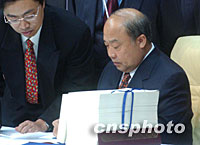 圖文:中國(guó)代表團(tuán)向世貿(mào)組織秘書處遞交授權(quán)書 2001年11月11日 17:02 ![]() 中國(guó)代表團(tuán)團(tuán)長(zhǎng)石廣生于當(dāng)?shù)貢r(shí)間11日晚在多哈簽署中國(guó)入世議定書。中新社記者 錢興強(qiáng) 攝