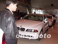北京一家汽車交易市場的進口轎車大廳,十二日冷冷清清,銷售商清閑異常。據說,目前這里還沒有一款汽車因中國加入世界貿易組織而降價,但這里的銷售商們預測進口車一定會降價,市民持幣等待使生意冷清是預料之中的事。中新社記者 王麗南 攝
