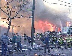 失事現場至少已有15名受傷民眾送附近醫院 2001年11月13日 01:19 ![]() ![]() 圖為墜機現場燃起的熊熊大火 中新網北京11月13日消息:美國航班墜毀后,紐約皇后區洛克威住宅區失事現場附近醫院已涌入多位因吸入濃煙而受傷的民眾。 這架空中巴士A-300型班機是于當地時間9時15分自肯尼迪機場起飛不久墜毀。事故現場洛克威區是個住宅區,直到中午為止,火勢仍未熄滅,但因濃煙由黑轉白,顯示火勢已經被控制。紐約市警察已全力疏散當地居民到安全地區。 災區附近的急診室目前至少已有15名受傷民眾,其中有2人因為吸入濃煙情況較為嚴重。 |