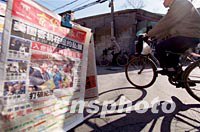 北京一家報紙十三日將美國客機墜毀事件刊登報首。“九一一”事件后,北京各報紙對美接連發生的災難事件反映迅速。中新社圖 劉殊瑾 攝