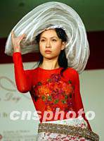 香港理工大學設計學院的應屆畢業(yè)生周日展示他們設計的各式時裝,其中一款繡花緊身紅上衣配帶歐式大帽賦予女性獨特韻味。中新社傳真 任晨鳴 攝