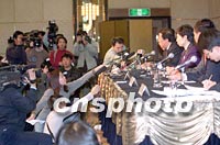 外經(jīng)貿(mào)部首次召開的入世新聞發(fā)布會二十六日在北京長富宮飯店舉行。盡管主辦者將發(fā)布會的場地擴大了一倍,取消了對中小媒體記者的限制,仍“招架不住”記者們對中國WTO官員的采訪熱情。中新社記者 史利 攝