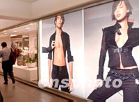 臺北市商業(yè)中心孝東路一家名牌時(shí)裝店的新廣告,表現(xiàn)方式頗為大膽“出位”。中新社記者 任晨鳴 攝