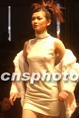 由中國紡織工業協會、中國服裝設計師協會主辦的2001中國國際時裝周,匯聚了來自法國、英國、日本、新加坡和中國等三十多家中外著名時裝品牌以及眾多著名時裝設計師,時裝周將向人們展示2002年最新流行時裝新款和色彩、面料流行趨勢。圖為維信集團二十九日舉辦張繼成時裝發布會,推出最新羊絨作品。中新社記者 錢興強 攝