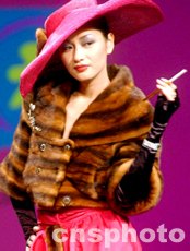 日前,在北京舉行的2001中國國際時裝周上,著名影視演員、模特瞿穎小姐在旅美華人設計師張天愛的時裝作品展上風采依舊。中新社記者 錢興強 攝