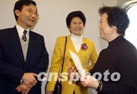 十二月十五日一早,許多支持董建華競選下屆行政長官的團體及個人紛紛到圣約翰大廈遞交支持董建華連任的信件。中新社傳真 任海霞 攝