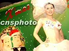 香港影視明星羅慧娟,15日在香港舉行的“第二十五屆圣誕婚紗及結婚用品展”上,演繹名店新款婚紗。中新社傳真 洪少葵 攝