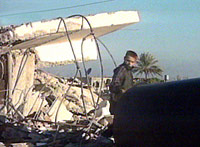 一名巴勒斯坦兒童十七日站在被以軍摧毀的廢墟前。阿拉法特此前呼吁巴所有派別立即停止一切軍事行動,并敦促以色列停止軍事進攻,恢復和談。