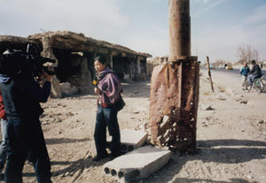 香港鳳凰衛視日前派出采訪隊深入阿富汗腹地采訪。圖為采訪隊在喀布爾做實地報道。鳳凰衛視 周兵/攝