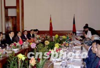 正在孟加拉進(jìn)行正式訪問(wèn)的中國(guó)總理朱镕基,當(dāng)?shù)貢r(shí)間十一日下午在孟加拉國(guó)首都達(dá)卡總理官邸與孟加拉總理卡莉達(dá)·齊亞舉行會(huì)談,就雙邊關(guān)系和共同關(guān)心的國(guó)際與地區(qū)問(wèn)題廣泛交換意見(jiàn)。中新社記者 張朔 攝