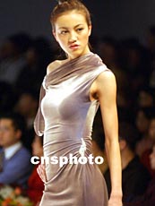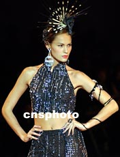 香港時裝節1月16日舉行“亞太時裝設計師表演”,模特展示一款香港設計師李日升設計的竭力突出女性優美身材的緊身女裝。中新社傳真 任晨鳴 攝