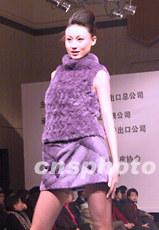 第28屆中國國際裘皮制品交易會16日在北京國際貿易中心舉行。此次會議的主要議題是加入WTO對中國裘皮業的影響及應對和2002年國際裘皮流行趨勢等。圖為裘皮之夜時裝表演中模特展示精美皮草。中新網圖 余瑞東 攝