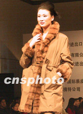 第28屆中國國際裘皮制品交易會16日在北京國際貿易中心舉行。此次會議的主要議題是加入WTO對中國裘皮業的影響及應對和2002年國際裘皮流行趨勢等。圖為裘皮之夜時裝表演中模特展示精美皮草大衣。中新網圖 余瑞東 攝