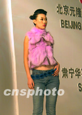 第28屆中國國際裘皮制品交易會16日在北京國際貿易中心舉行。此次會議的主要議題是加入WTO對中國裘皮業(yè)的影響及應對和2002年國際裘皮流行趨勢等。圖為裘皮之夜時裝表演中模特展示彩色裘皮馬甲。中新網圖 余瑞東 攝
