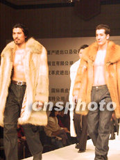 第28屆中國國際裘皮制品交易會16日在北京國際貿易中心舉行。此次會議的主要議題是加入WTO對中國裘皮業的影響及應對和2002年國際裘皮流行趨勢等。圖為裘皮之夜時裝表演中模特展示精美皮草。中新網圖 余瑞東 攝