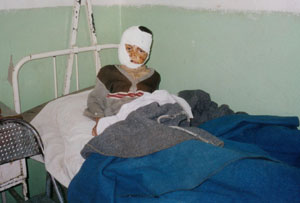 美軍在阿富汗投下燃燒彈時,不知情的孩子誤以為是空投的食物并伸手去接。這是喀布爾醫院中被燒傷的阿富汗男孩。鳳凰衛視 周兵/攝
