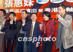 張惠妹“2002世界巡回演唱壓軸演唱會”將于年終歲末在香港‘紅館’連續(xù)多日舉行,“阿妹”與代表贊助機構(gòu)的澳門“睹王”何鴻□四姨太梁安琪等多位名人1月28日在香港出席發(fā)布會,傳說與張惠妹鬧感情糾紛的周立景(右一)亦出席。中新社圖 任晨鳴 攝