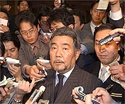今天宣布辭職的還有眾院運營委員長鈴木宗男。這位前外務省官員與田中是冤家對頭,正是關于他是否應向外務省施加壓力、要求拒絕非政府組織出席重建阿富汗國際會議問題上,田中與野上在國會上各執一詞,引起混亂,從而雙雙被免職。