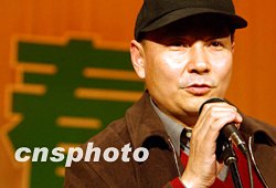中國電影集團日前在北京舉辦迎春聯誼會。圖為在影片中扮演鄧小平的著名演員盧琦,在會上用四川方言向與會的賓客恭賀新禧。中新社記者 錢興強 攝