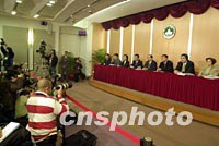 受到世界矚目的澳門賭牌競投于八日向公眾宣布批給結果,圖為競投委員會主席譚伯源等在新聞發布會上答海內外記者問。中新社傳真 宗金柱 攝