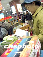 美國總統小布什訪華前夕,在北京王府井書店里,有關美國的書籍成為了北京百姓購買的熱點。中新社圖 杜洋 攝
