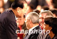 錢其琛副總理二十一日中午在北京問候隨美國總統訪華的白宮辦公廳主任賴斯。中新社記者 賈國榮 攝