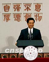 中國國家副主席胡錦濤二十二日在母校北京清華大學講話,歡迎美國總統布什前來演講。中新社記者 賈國榮 攝