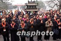 由臺灣佛教人士組成的法門寺佛指舍利赴臺灣地區瞻禮(供奉)恭迎團,二十二日來到西安大慈恩寺做法事。中新社記者 錢興強 攝