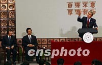 中國國家副主席胡錦濤二十二日在北京清華大學歡迎訪華的美國總統布什演講。中新社記者 賈國榮 攝