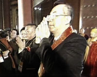 臺灣社會名流吳伯雄(右)和中國佛教協(xié)會副會長兼秘書長刀述仁為佛指舍利拈香