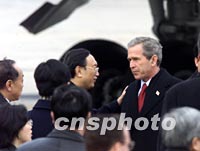 美國總統布什二十二日下午結束對中國為期兩天的工作訪問后,乘專機離開北京。中國駐美大使楊潔篪等前往機場送行。中新社記者 滿會喬 攝