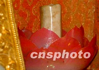 法門寺佛指舍利赴臺灣地區瞻禮(供奉)法會二十二日在西安法門寺舉行,來自臺灣的恭迎團,由大陸佛教人士組成的護送團以及護法團等各界有關人士千余人匯集法門寺。圖為法門寺大雄寶殿供奉的佛指舍利。中新社記者 錢興強 攝