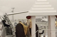 組圖:法門寺佛指舍利在咸陽機場登上專機赴臺 2002年02月23日 09:24 ![]() 機場恭送法會上,佛指舍利徐徐移向?qū)C。 ![]() 臺灣信眾在咸陽機場虔誠地恭送佛指舍利登機。 ![]() 機械平臺升高后,佛指舍利靠向機艙門。 ![]() 佛指舍利進入機艙。 ![]() 咸陽機場的佛指舍利恭送法會。 中新網(wǎng)西安2月23日消息:(記者張素平)今天上午9點整,運載佛骨舍利的“港龍航空”公司KA8943航班從陜西西安咸陽機場起飛。 此前,從早晨8:10時開始,在機場舉行了約15分鐘的恭送儀式。 運載佛指舍利和大陸佛教界護法團、護送團及臺灣佛教界恭迎團的兩架專機,將在約中午時分在香港作短暫停留,轉(zhuǎn)機后飛往臺北。 據(jù)悉,作為佛教圣物和無價國寶的佛指舍利,將在臺灣巡回瞻禮37天,之后由島內(nèi)佛界恭送之后返回法門寺。此次佛指舍利赴臺是根據(jù)臺灣地區(qū)佛教界的請求,由中央政府特別批準(zhǔn)的。這是海峽兩岸的佛門盛事。 此次大陸佛教界組成了60人護送團和20人護法團恭送佛指舍利赴臺瞻禮。臺灣佛教界表示將本著“聯(lián)合迎請,共同供奉”的原則,在臺北、臺中、高雄等地公共場所和佛教寺院供奉。