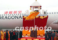 法門寺佛指舍利赴臺灣地區瞻禮(供奉)恭迎團、護法團,以及兩岸佛教人士二十三日在西安咸陽機場乘專機經香港赴臺。 中新社圖 錢興強 攝