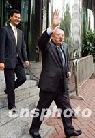 ![]() 二月二十八日董建華得知成為香港特區第二任行政長官候任人后步出圣約翰大廈,并面帶笑容向記者招手。中新社記者 任海霞 攝