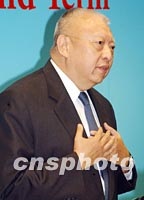 香港2002年行政長官選舉候選人提名期28日下午結(jié)束,選舉主任彭鍵基法官隨即宣布董建華為香港特區(qū)第二任行政長官候任人。中新社圖 洪少葵 攝