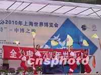 中國申辦二0一0年上海世博會組委會1日在杭州舉行宣傳活動,藝術家們登臺獻藝,奉獻了一場精彩紛呈的申博大型文藝表演。近千名杭州市民揮動小旗用自己的方式為上海申博加油助威。中新社圖 張瑛 張文 攝