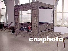 古代夫君與妻妾同睡一張的“三人用大木床”。中新社圖 張瑛 攝