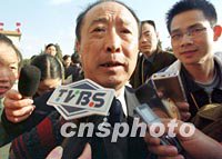九屆全國人大五次會議五日在北京人民大會堂召開。浙江代表陳繼來被記者包圍,就中國足球假球、黑哨以及司法介入等問題回答記者提問。中新社記者 張宇 攝