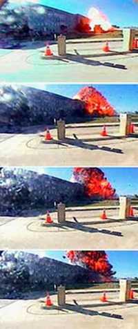 五角大樓北面的監視鏡頭拍攝的撞擊場面