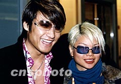 近日,國際著名品牌Fendi在上海恒隆廣場舉行二○○二春夏女裝發布會。名模胡兵、呂燕出席了此次充滿浪漫情懷的時裝發布會。圖為胡兵和呂燕在時裝發布會上。中新社圖 湯彥俊 攝