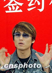 中國著名影視、歌、模三棲明星胡兵先生,二十六日在北京與中國新絲路模特經紀管理有限公司正式簽約。圖為胡兵在簽約儀式上。中新社記者 錢興強 攝