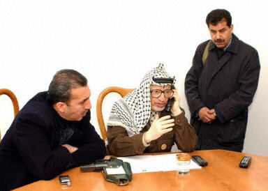 圖文:阿拉法特表示巴勒斯坦絕不向以色列屈服 2002年03月29日 15:52 阿拉法特在被困的總部內接受采訪 ![]() 阿拉法特通過電話介紹情況(法新社) 中新網北京3月29日消息:阿拉法特對以色列今天襲擊其在拉馬拉總部的行動并未屈服。他說巴勒斯坦人民絕不會放棄建國的斗爭。 阿拉法特的總部陷于以軍坦克的包圍之中。他在辦公室內通過報道電視臺的直播發表講話說:“他們想讓我成為階下囚或者他們就像殺死我,但是我將成為烈士。愿神讓我成為烈士! 阿拉法特在接受半島電視臺的采訪時說,以軍使用坦克和導彈襲擊他在拉馬拉的總部. 阿拉法特指出:“這就是以色列對每一次和平努力的回應,因為他們不想要和平,他們不想要和平。我們必須記住這點! 阿拉法特又說:“巴勒斯坦人和阿拉伯國家人民都不會投降或者屈服!彼a充說,他視以軍的軍事行動為對阿盟首腦會議通過的沙特和平計劃作出的反應。 阿拉法特說,他已經與美國特使討論了目前的局勢。他說:”你們在哪?你們難道不知道這將使整個中東都陷于動蕩嗎?”