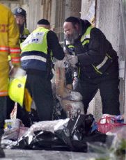 圖文:耶路撒冷超市發生自殺爆炸 至少3死16傷 2002年03月29日 21:06 ![]() 耶路撒冷超市爆炸現場的一名傷者 ![]() 以色列人將自殺炸彈襲擊者的尸體移走(法新社) 中新網香港3月29日消息:耶路撒冷訊,在以巴雙方展開大規模軍事沖突之際,耶路撒冷市的一個購物中心當地時間今天下午突然發生自殺式爆炸事件。有消息指,事件目前至少造成三人死亡,十余人受傷。 暫知十多人受傷,巴解組織法塔赫一個支派承認發動襲擊。 美聯社報道,以色列警方和救援人員表示,耶路撒冷市的一個購物中心當日下午發生爆炸事件,十多人受傷。 警方稱,爆炸事件發生在耶路撒冷東南部基亞特-尤維爾區的一個市場,一些猶太人在附近居住。目擊者表示,當地時間下午2時左右(北京時間晚7時),一名女子避開守護,沖入該家市場,引爆身上炸彈。該女子當場被炸死。 據外電引述目擊者和來自醫院的消息,另有兩人被炸死,16人受傷。 巴勒斯坦解放組織主流派法塔赫下屬的軍事組織阿克薩烈士旅已經宣布對本次爆炸事件負責。 據悉,以色列北部城市內坦亞周三受到巴人自殺式襲擊后,以軍采取18個月來最強硬的軍事行動。今天清晨出動數十輛坦克開入西岸城鎮拉馬拉,并圍堵巴勒斯坦自治政府主席阿拉法特的官邸,并與官邸內保衛阿拉法特的巴方衛隊爆發槍戰。雙方沖突最少造成6死逾20人受傷。 激進的巴解人民陣線已經威脅說,會向全球的以色列人發動襲擊。該組織警告,全球每一名以色列人都會是他們的報復目標。