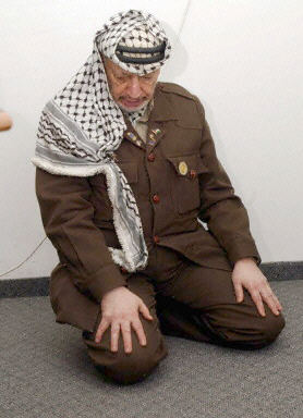 圖:阿拉法特在被圍困的辦公室里祈禱