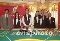 澳門博彩股份有限公司一日凌晨正式接手經營澳門旅游娛樂有限公司屬下的十一間賭場,新的博彩合約正式生效。交接后原有賭具和籌碼照常使用。中新社記者 宗金柱 攝