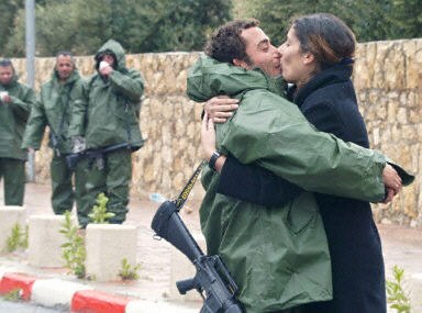 圖:以色列士兵與女友分別前相擁而吻