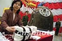 “神舟”三號返回艙開艙 太空“乘客”逐一亮相 2002年04月04日 16:20 ![]() “神州三號”飛船返回艙搭載物品開艙交接儀式,4日在中國空間技術(shù)研究院北京空間技術(shù)研制試驗中心舉行,解放軍總裝備部,中科院,中國航天科技集團公司等各界相關(guān)人士出席了交接儀式。中新社記者 王瑤 攝